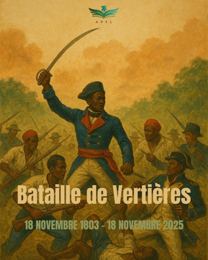 Le 18 novembre 1803 demeure l’une des dates les plus éclatantes de l’histoire universelle. Ce jour-là, à Vertières, près du Cap-Haïtien, les soldats de l’armée indigène firent capituler les troupes françaises commandées par Rochambeau. Cette bataille décisive ouvrit la voie à l’Indépendance et permit, le 1er janvier 1804, la naissance de la première République noire au monde : la République d’Haïti.